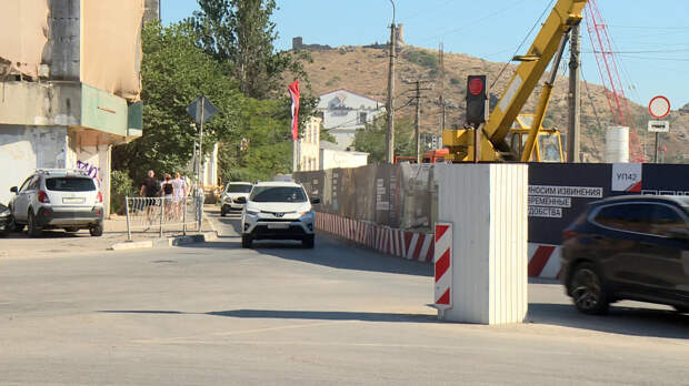 Вот от этого перекрёстка улиц Новикова, Крестовского и Калича туда, в направлении площади 1 Мая, запрещён проезд для всех нерезидентов Балаклавы. Разрешён только местным жителям, строителям, владельцам, капитанам маломерных судов, но также общественному транспорту и сотрудникам экстренных служб. В первый день работы новой транспортной схемы машины едут как обычно. Работает реверсивный светофор. Управляют им в ручном режиме.— С утра здесь поменялось как-то дорожное движение?